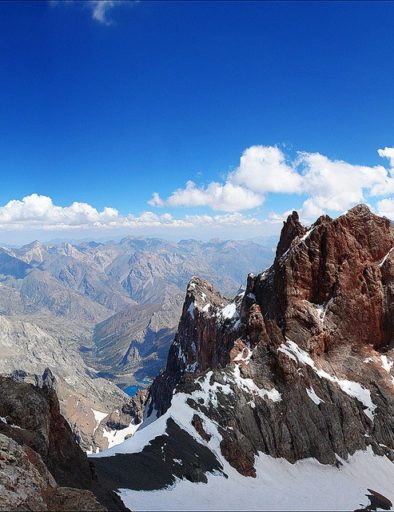 The peak of Ismoil Somoni - the highest point on the territory of the former USSR, is on the list of ascents for the implementation of the "Snow Leopard" standard. It is located in Tajikistan in the northwestern Pamir at the junction of the ridges of the Academy of Sciences and Peter I. 13 kilometers from the peak of Ismoil Somoni is Korzhenevskaya peak. In 1931 the mountain was named the Stalin Peak, in 1961 it was renamed to the peak of Communism, and in 1999 year by the authorities of Tajikistan was renamed again and named the peak of Ismoil Somoni. On the peak of Communism (I. Somoni) there are more than 30 routes. The most difficult ones are from the Belyaev glacier. There is a steep rock wall of the south-western exposure, the length of about two kilometers, of which 600-800 meters (called "belly") have a slope close to 90 degrees.